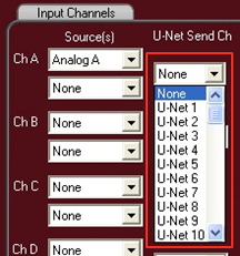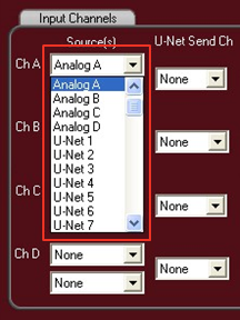 Using the dropdown boxes, select up to 2 sources for each input of the UX8800.